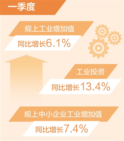 本报北京4月18日电(记者王政、刘温馨)记者18日从工业和信息化部获悉:今年以来,工业经济保持较快增长,高质量发展取得积极成效,总体实现良好开局。一季度,规模以上工业增加值同比增长6.1%,较2023年全年提高1.5个百分点,为8个季度以来的最高值;工业投资同比增长13.4%,规模以上中小企业工业增加值同比增长7.4%。